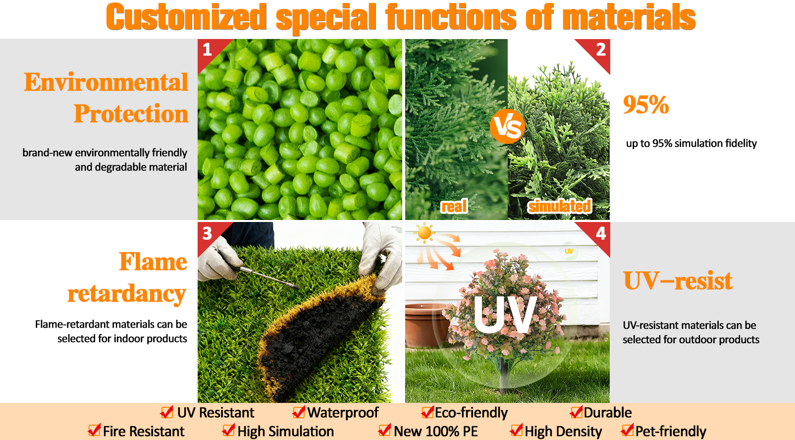 Tấm chắn cây giả hoa UV RUOPEI PQ24 100*100cm, tường cây xanh nhân tạo bằng nhựa trang trí